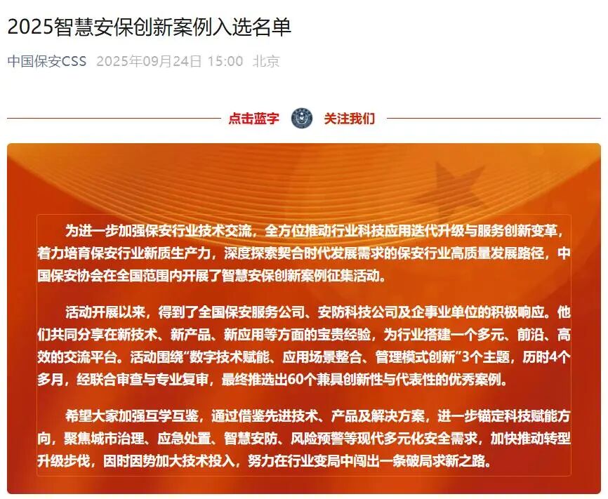 近日,南京市保安服務有限公司榮獲中國保安協(xié)會頒發(fā)的“保安行業(yè)科技賦能實踐單位”稱號,標志著其從傳統(tǒng)安保向“人技一體”智慧模式轉(zhuǎn)型的實踐成果獲得行業(yè)高度認可。同時,公司自主研發(fā)的“空地一體化智慧安保巡檢系統(tǒng)”成功入選中國保安協(xié)會“2025智慧安保創(chuàng)新案例”,全國僅60個項目獲評,進一步彰顯了公司在智慧安保領(lǐng)域的創(chuàng)新實力。